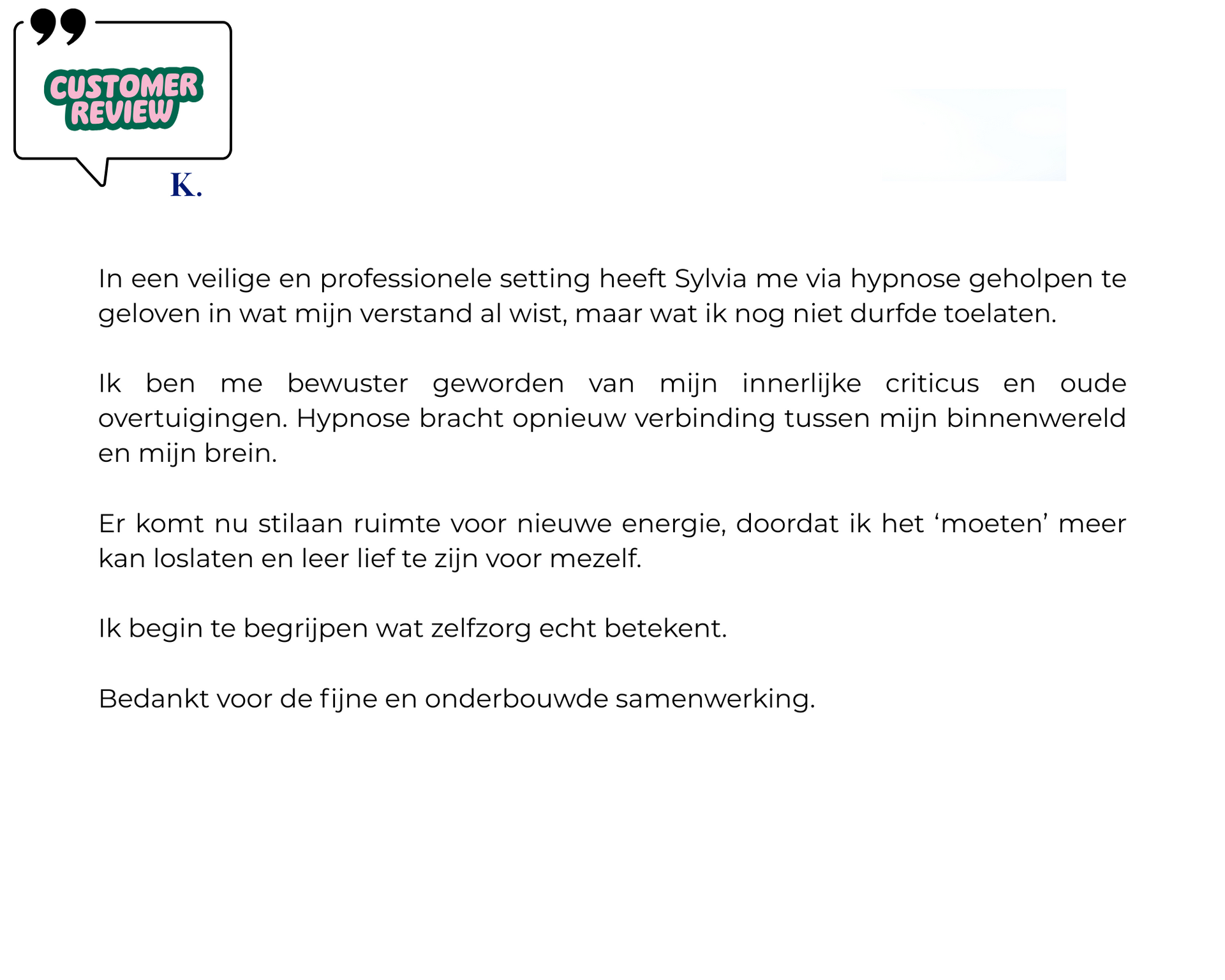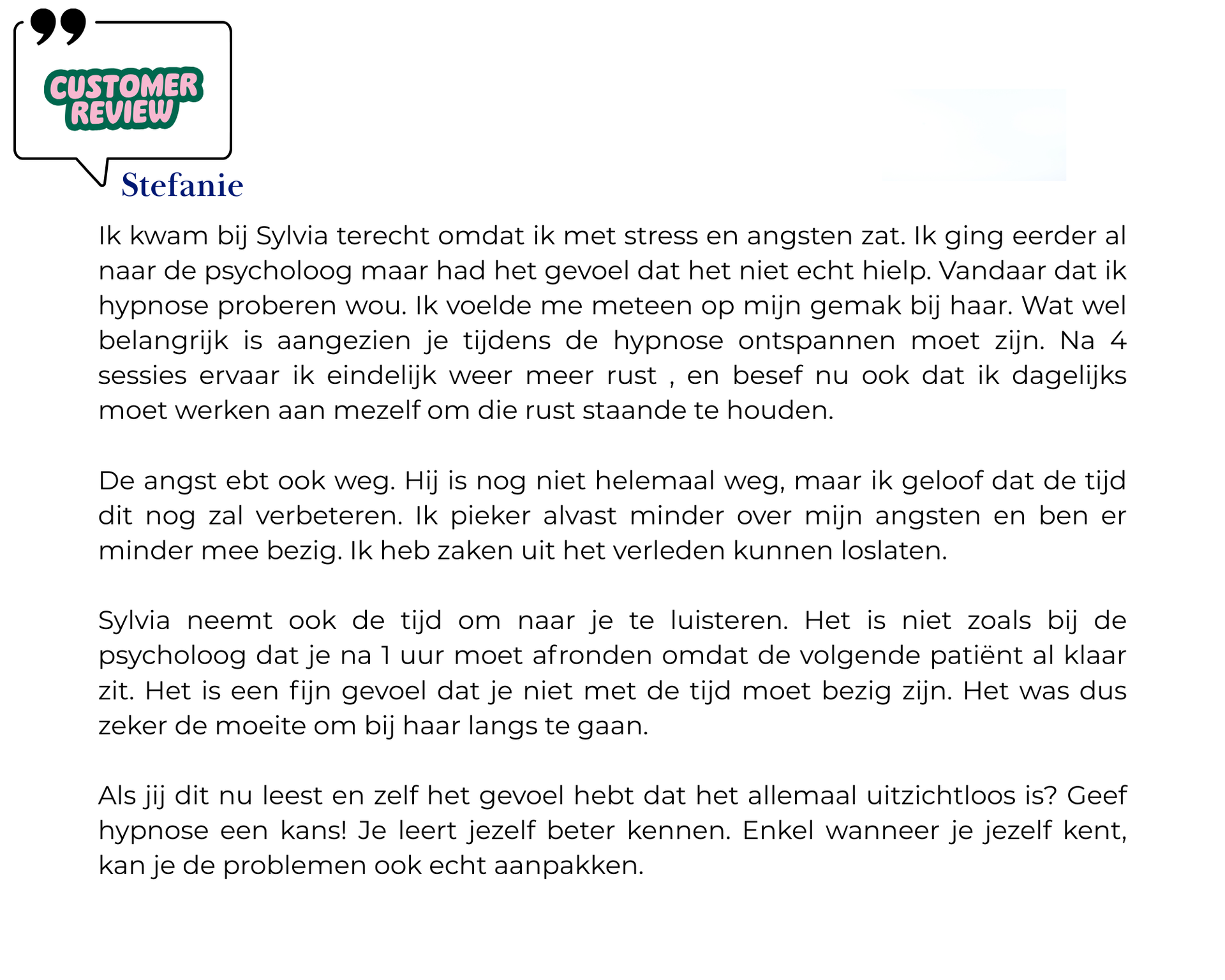 Mijn naam is Sylvia Verburgt en ik weet uit ervaring dat hypnose werkt!